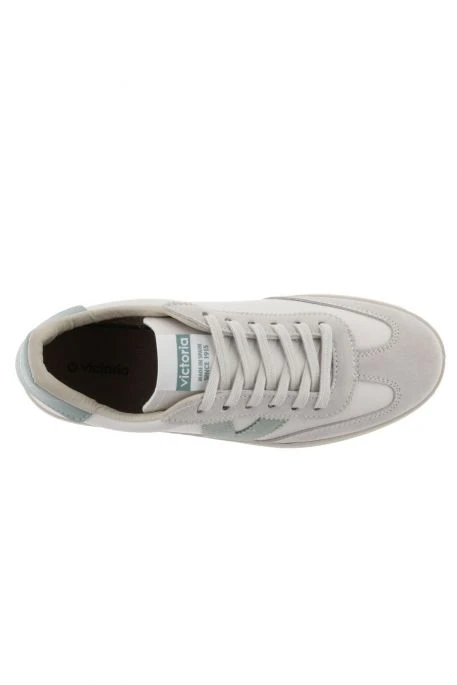 Baskets Victoria Berlin Cycliste Femme. Baskets fabriquées dans une matière effet cuir et pièces en cuir fendu. Détails de couleur au niveau du V et de l’arrière de la chaussure. Semelle légèrment plus foncée fabriquée avec des huiles végétales plutôt que minérales. La semelle intérieure est fabriquée à partir de matériaux recyclés. Ce modèle est fabriqué en Espagne.