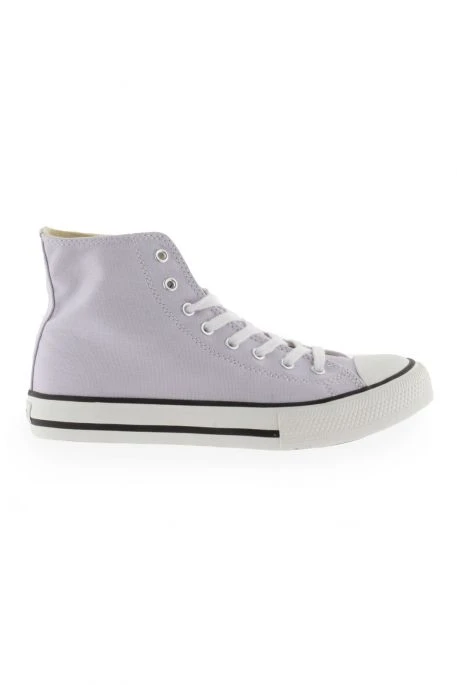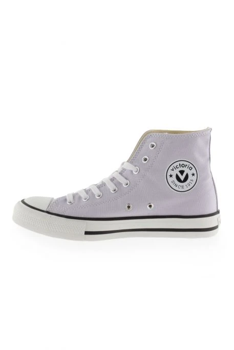 Baskets Victoria Tribu pour femme. Bottines en toile de coton avec semelle plate et bout en caoutchouc. Fermeture à lacets plats blancs et étiquette sur la languette. Ces bottines en toile sont légères et intemporelles. Lavables grâce à la composition en coton.