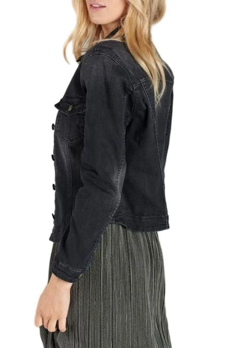 Blouson en jean Le Temps des Cerises Lilly pour femme. Blouson en jean de coloris bleu, fermeture boutonnée, poches poitrine, coupe droite.