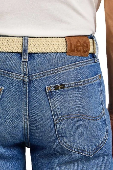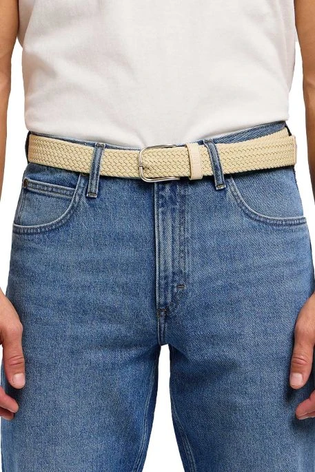 Ceinture Lee Webbing in Ecru, ceinture Lee en toile, boucle en métal, sangle preforée, la laguette et la lanière sont dans une teinte écrue.