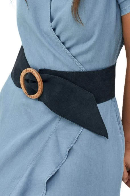 Ceinture Salsa Daim en cuir souple. Boucle en bois.
