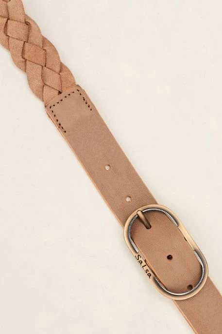 Ceinture en cuir beige de marque Salsa, ceinture tréssée avec boucle métallique, largeur 2.5 cm