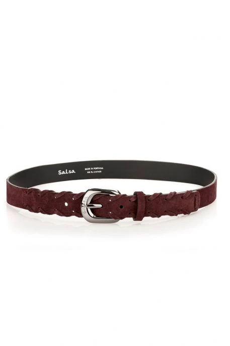 Ceinture Salsa pour femme, ceinture tressée en daim de coloris bordeaux, largeur 3cm