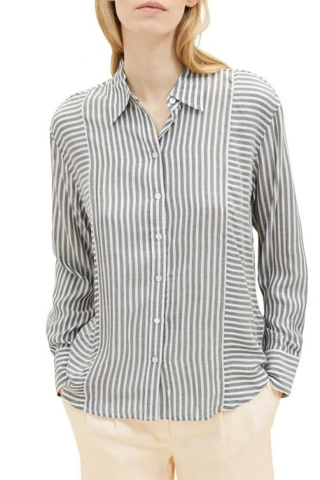 Chemisier à rayures Tom Tailor pour femme, fermeure boutonnée, poignets boutonnés, coope loose fit,