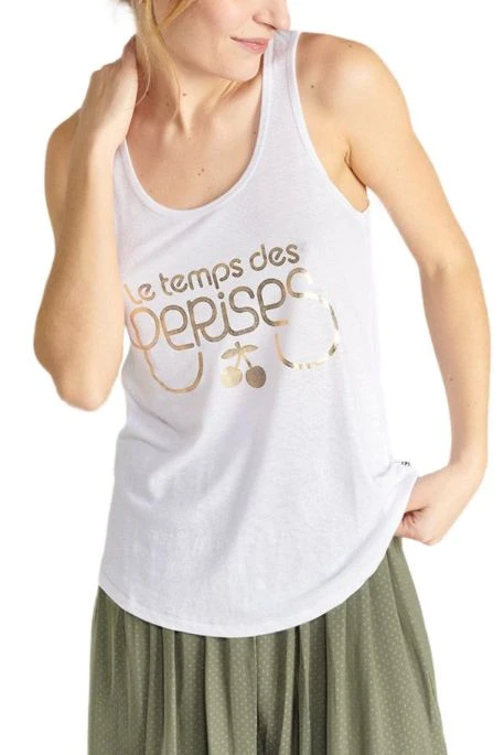 Débardeur Le Temps Des Cerises Debtrame pour femme. Débardeur basic avec inscription dorée « Le temps des cerises »