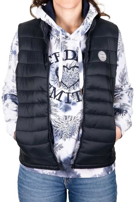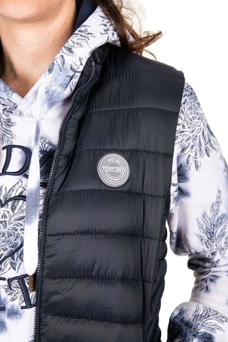 Doudoune Teddy Smith Terry, doudoune pour femme, doudoune sans manches, fermeture zippée, écusson sur poitrine. Cette doudoune possède un col montant et deux poches latérales zippées.