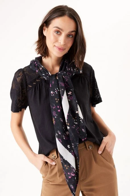 Foular Garcia Imprimé pour femme. Foulard imprimé avec bords contrastés, format carré, dimensions : 120X120 cm.