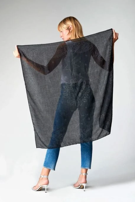 Foulard TDC pour femme, foulard avec des apllications brillantes, motif graphique, forme carrée pour ce joli foulard ( 100 cm )