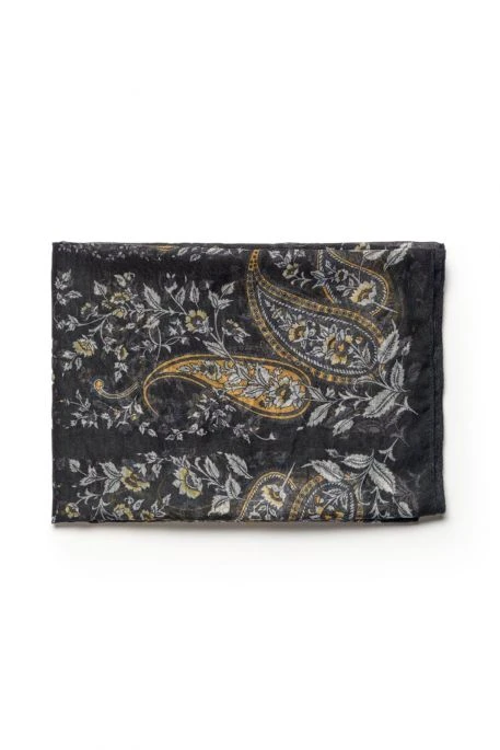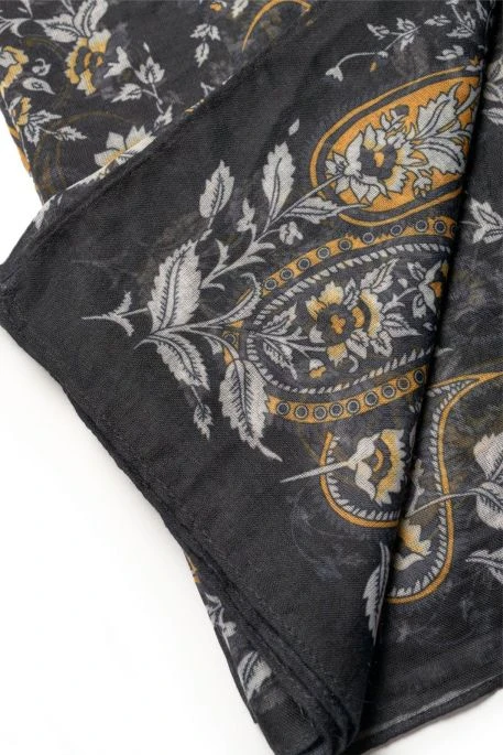 Foulard Le Temps Des Cerises pour femme. Foulard à motif floral blanc et moutarde.