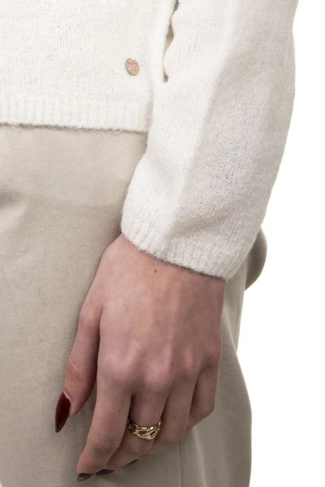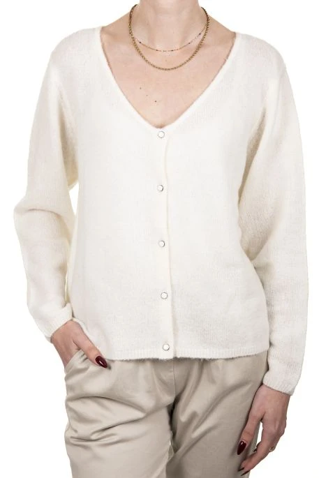 Gilet Teddy smith pour femme. Gilet col rond avec patte de boutonnage sur le devant. Boutons fantaisies métalliques. Il contient 15% de mohair.