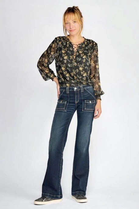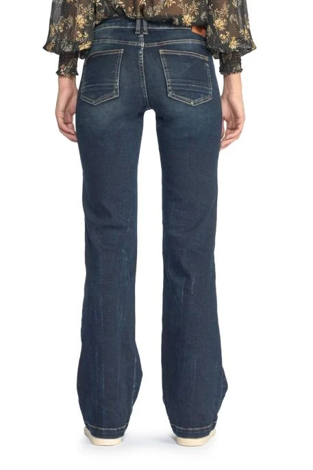 Jean Le temps des cerises pour femme,coupe flare, fermeture zippée, 2 petites poches boutonnées sur le devant,