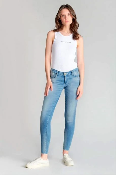 Jean Temps des Cerises pour femme, jean coupe slim, taille standart, effet pulp pour un effet « belles fesses « , coloris clair, fermeture zippée,