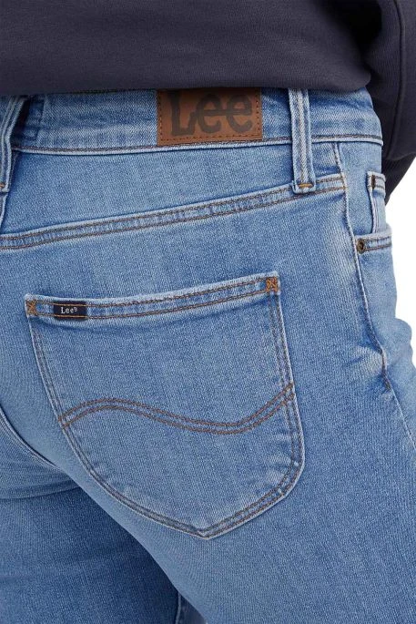 Jean Lee Elly pour femme. Jean de coupe slim sans être skinny, hauteur de taille intermédiaire, fermeture bouton et braguette zippée. Patch Lee® en cuir à l’arrière.