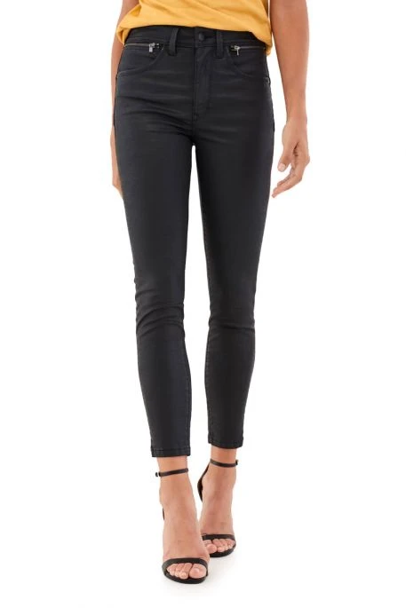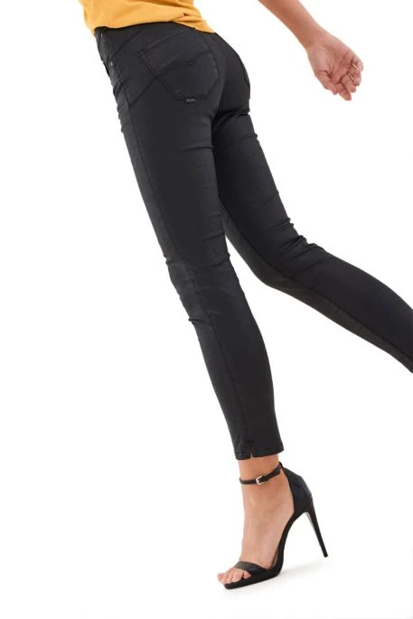 Jean Salsa Faith Push In Cropped Enduits. Jean Salsa enduit taille haute un bouton fermeture zippée. Coupe skinny et longueur 7/8, ourlet avec une petite fente latérale. Détail de deux fermetures éclaires sur le devant au niveau de la taille. Coutures au dessus des poches arrondies qui met la silhouette en valeur pour un effet push up.