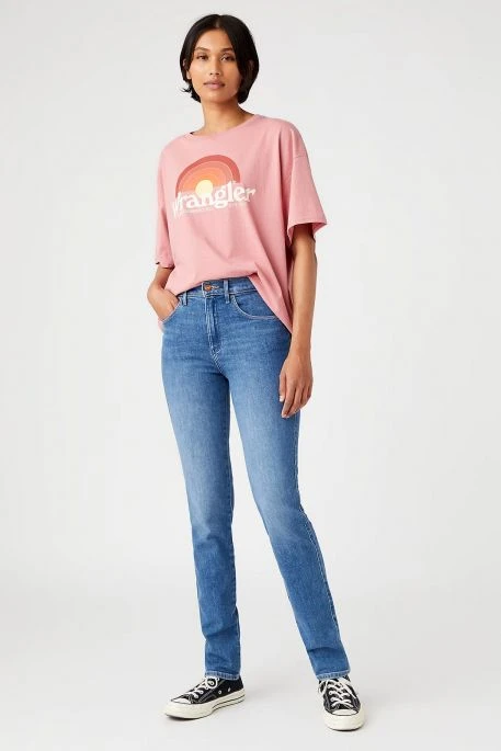 Jean Wrangler pour femme, taille haute, coupe slim, braguette zippée, denim 5