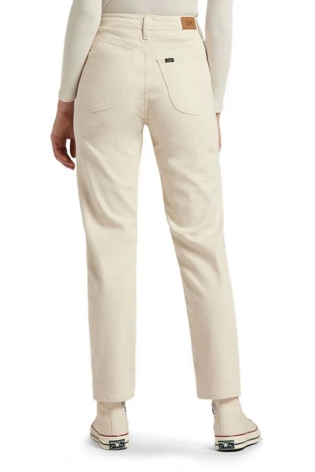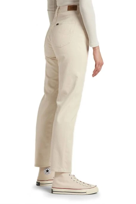 Jean Lee Carol pour femme. Jean taille haute, coupe droite de la cuisse à la cheville, coupe courte (au dessus de la cheville). Fermeture par bouton et braguette zippée.