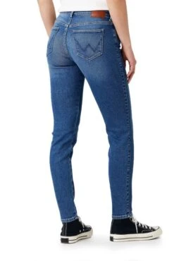 Jeans Wrangler Med pour femme. Jeans de coupe slim, taille intermédiaire, braguette zippée. Denim stretch pour un meilleur confort. Ce jeans Wrangler femme convient à toutes les morphologies.