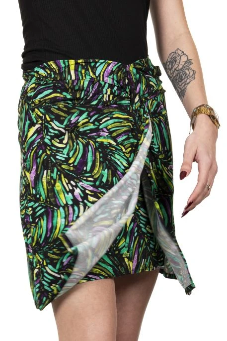 Jupe Teddy Smith pour femme. Jupe courte en crêpe de viscose avec doublure et un noeud devant qui donne un effet twisté.