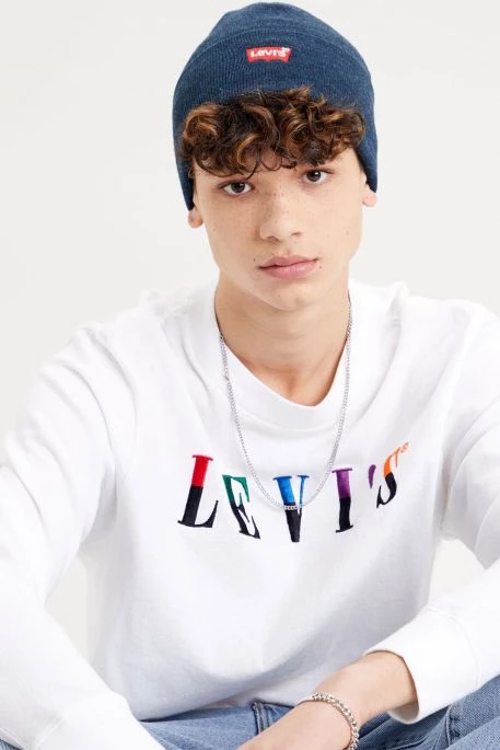 Bonnet Levi’s® navy blue pour homme. Bonnet souple avec le logo Levi’s® brodé sur le devant. Bonnet avec un revers idéal pour vos sorties quotidiennes.