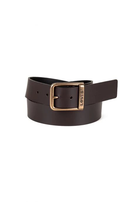 Ceinture Levis Alderpoint pour homme. Ceinture confectionnée en cuir véritable avec boucle en acier arrondie et logo Levi’s gravé.