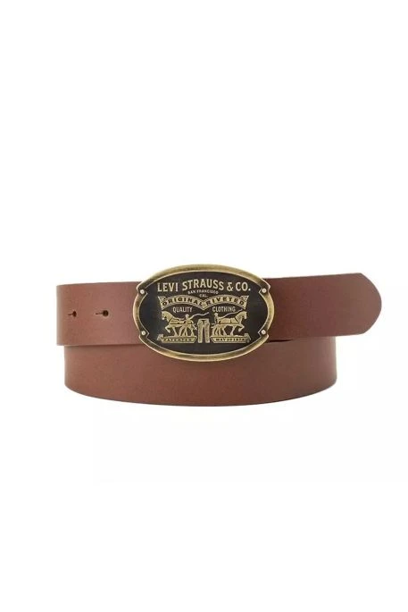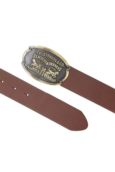 Ceinture Levi’s® Billy, ceinture en cuir avec boucle plaque en métal avec les deux chevaux qui ne parviennent pas à déchirer un jean Levi’s®.