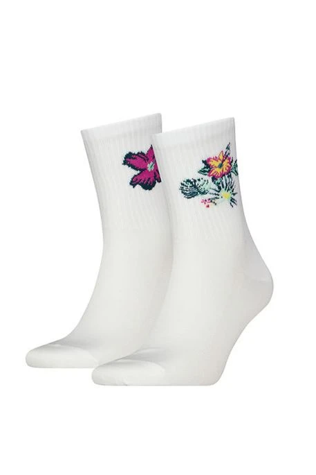 Lot de 2 paires de chaussettes Levi’s® Short pour femme. Chaussettes mi-hautes avec une bande de ventilation de chaque côté, ce qui assure une bonne respirabilité. En haut se trouve des motifs de fleurs, et le talon et la pointe sont renforcés pour éviter l’usure.