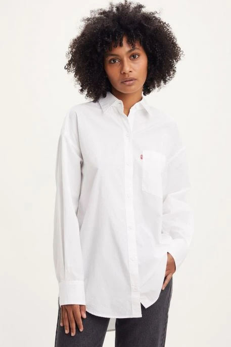 Chemise Levi’s® pour femme, chemise manches longues, poche poitrine, red tab sur la poche, chemise blanche Levi’s® avec des manches plus amples et une coupe plus longue.