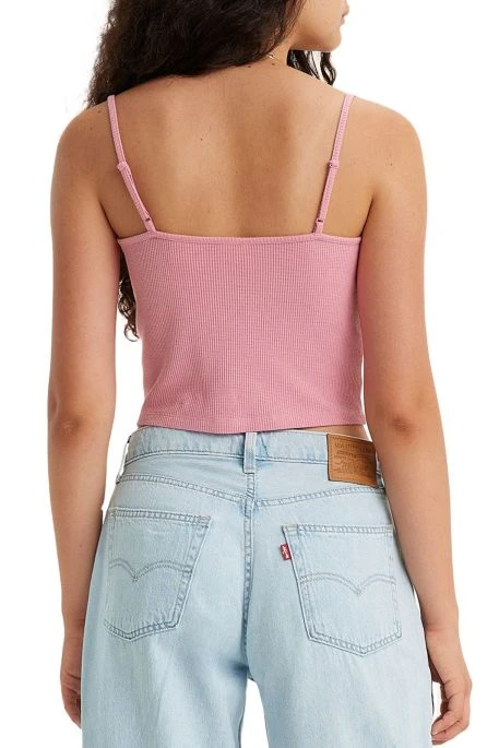 Débardeur Levi’s® Dry Goods Sugar, débardeur en maille gauffrée avec de fines bretelles reglables avec une encolure en V, la coupe est slim fit, une étiquette Levi’s® Dry Good à la base.