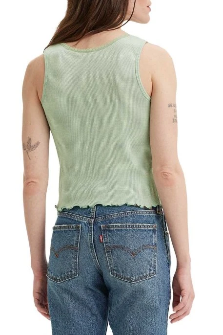 Débardeur Levi’s® pour femme, encolure en V, coupe ajsutée, débardeur avec un ourlet roulotté à effet ondulé, une bordure en dentelle et un petit nœud au milieur du col.
