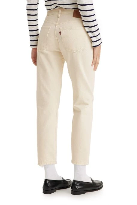 Jean Levi’s® 501® Crop pour femme. Jean de coupe droite avec une longueur raccourci, ajusté des hanches aux cuisses, taille haute. Fermeture par bouton. Denim original 501® 5 poches.Le bas du jean est légerement usé.