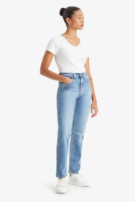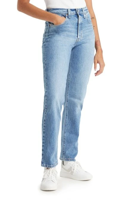 Jeans levi’s® 501® pour femme. Jeans coupe droite avec fermeture à boutons, taille haute, 5 poches, patch en cuir sur l’arrière, longueur classique.