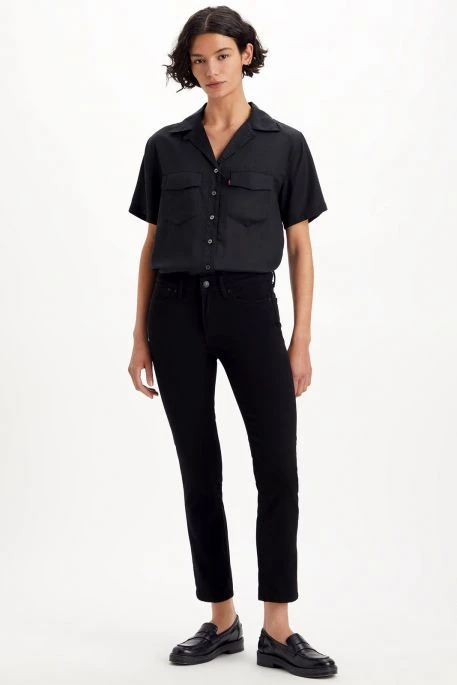 Jean Levi’s® 712™ Slim pour femme. Jean de taille mi-haute, coupe ajustée au niveau des hanches et des cuisses. Jambes ajustées. Fermeture par bouton et braguette zippée. Jean cinq poches. Élasticité moyenne. Très beau denim noir. Jean 712 à poche passepoilée pour une touche vintage.