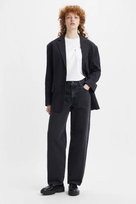 Jean Levi’s® Baggy Dad pour femme. Jean de coupe Loose, large des hanches et des cuisses, coupe droite, taille mi-haute, fermeture par bouton et braguette zippée. Denim 5 poches.