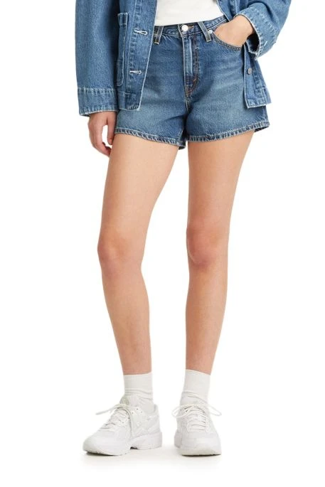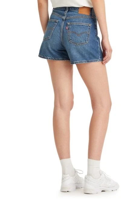 Short Levi’s® Mom’80 Black Stonewash, short pour femme avec une taille haute, une coupe en A ( trapèze ), la fermeture est zippée.