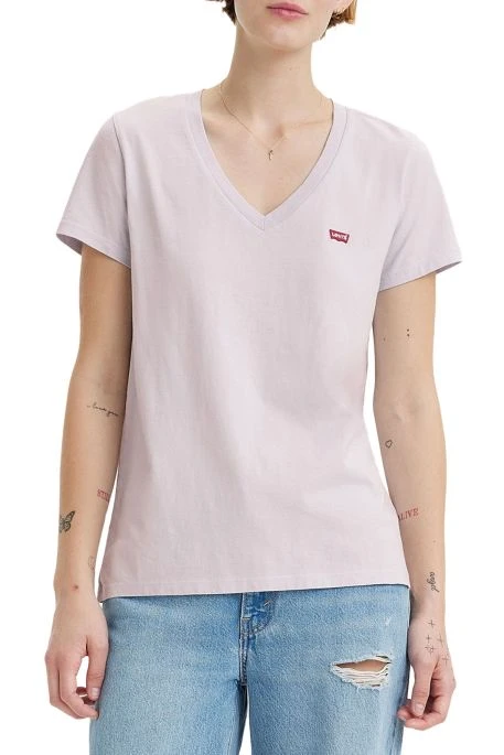 Tee-shirt Levi’s® Perfect pour femme. T-shirt de coupe droite, manches courtes, col en V. Jersey non extensible. Logo de la marque sur la poitrine gauche.