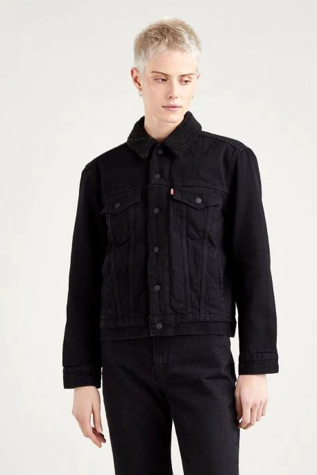 Veste Sherpa Levi’s® Trucker pour femme. Veste Sherpa de coupe décontractée, manches longues avec poignets à boutons pression, fermeture par patte de boutonnage à boutons pression. Ce modèle de sherpa femme possède 2 poches poitrine en pointe à boutons pression et 2 poches latérales passepoilées.