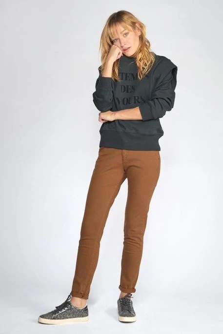 Chino Le Temps des Cerises Dyli2 pour femme. Chino avec une hauteur de taille standard, fermeture par bouton et braguette zippée. Ce modèle de pantalon chino pour femme possède deux poches latérales italiennes et deux poches à l’arrière passepoilées.