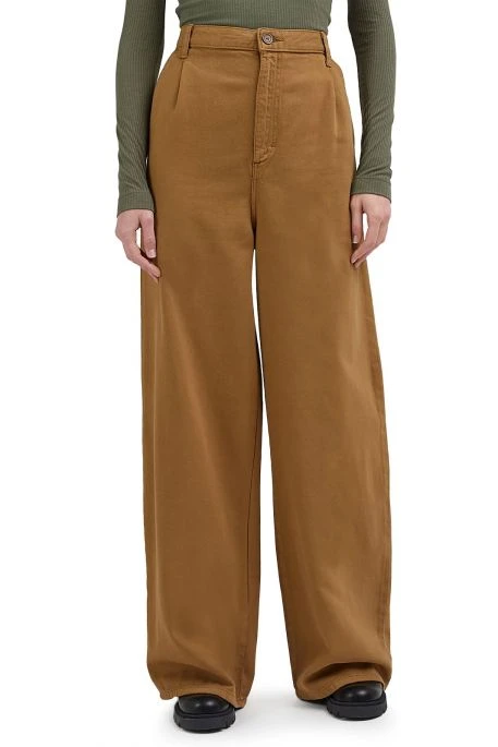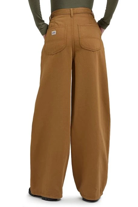 Chino pour femme de marque Lee, la coupe est extra large, la taille haute, la braguette zippée, vous aimerez les pinces à l’arrière qui lui donnent beaucoup de tenue. On aime le coloris chaud et épicé de ce chino.