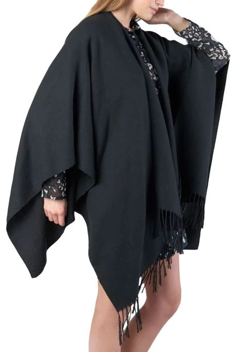 Poncho Le Temps des Cerises Pili pour femme. Poncho de coupe ample, col châle, franges à la base.