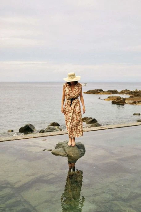 Robe Le Temps des Cerises Jourbab à motif fleuri, robe longue, robe portefeuille TDC avec col cache-coeur, bouton pression au niveau de l’encolure.