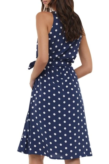 Robe Lee Cooper Lalie SM pour femme. Robe fluide sans manches, coupe classique, col rond, ceinture à la taille amovible. Tissu imprimé pois.