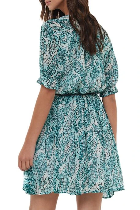 Robe Lee Cooper Laura MC pour femme. Robe de coupe courte au dessus des genoux, manches courtes au niveau des coudes, col en V. Tissu imprimé all over « immitation serpent ».