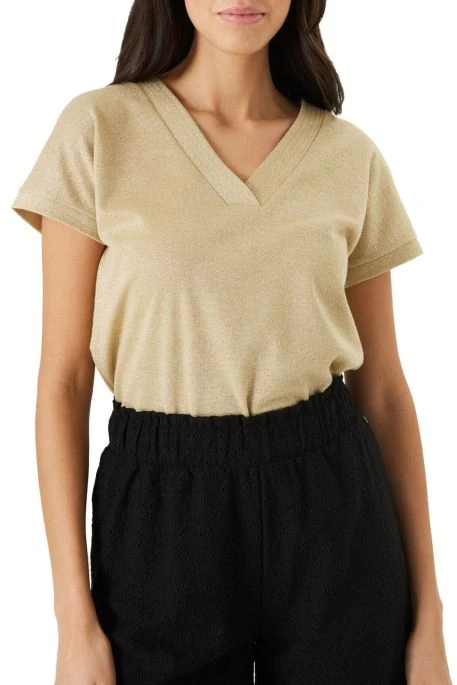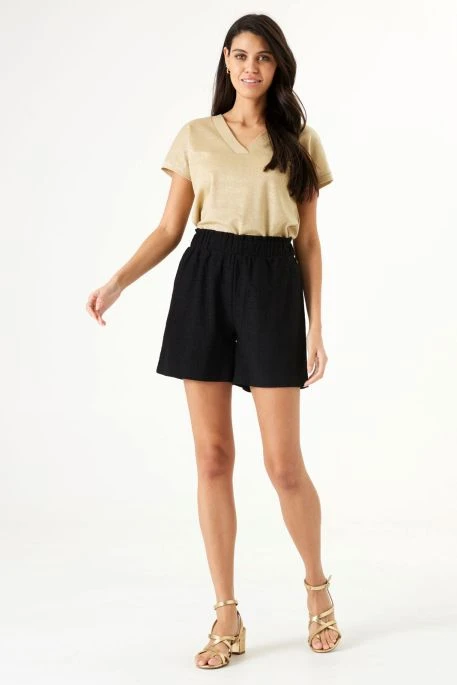 Tee Shirt Garcia pour femme, t-shirt avec encolure en V, manches courtes, coupe regular fit, effet brillant.