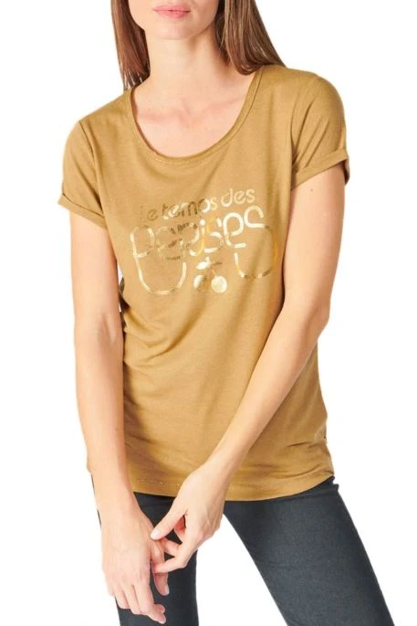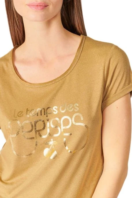 Tee Shirt Le Temps des Cerises pour femme, inscription de la marque Le Temps des Cerises aux surpiqûres irisées, manches courtes, col rond.