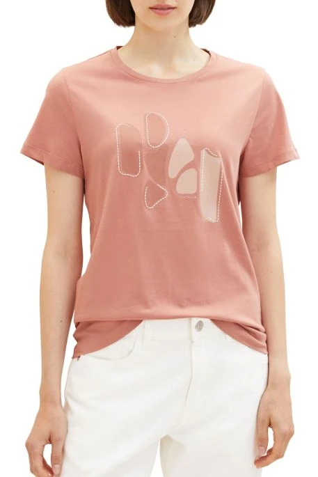 Tee Shirt Tom Tailor pour femme, manches courtes, encolure ronde, coupe regular, imprimé sur le devant.