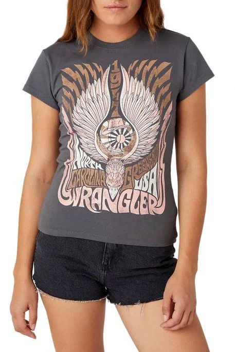 Tee Shirt pour femme de marque Wrangler, T-S manches courtes, encolure ronde, coupe slim ajustée,