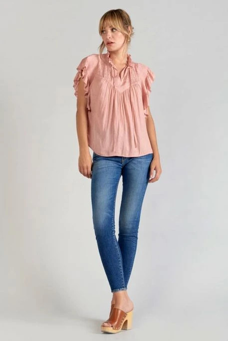 Top Le Temps des Cerises pour femme, vous aimerez les manches à volants, le lien pour fermer ou pas votre joli petit haut, ce haut est très habillé et féminin avec son tissus au motif animalier.